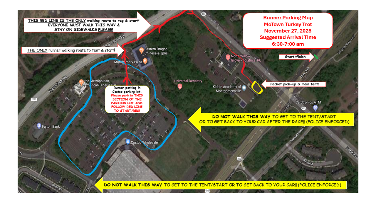 A detailed packet pick-up and race day email will be emailed out to all registered runners/walkers on November 27th.