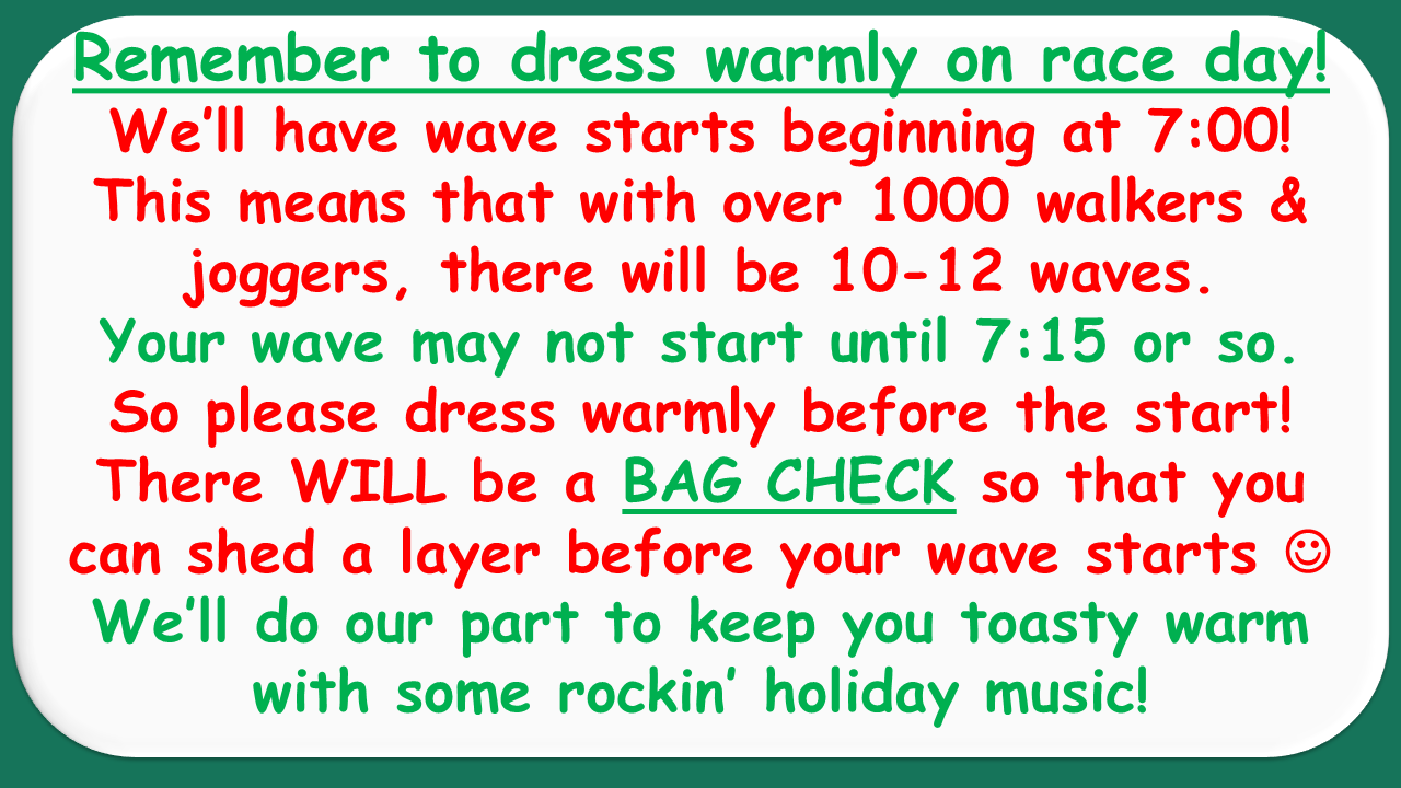 🎅a packet pick-up email will be emailed out to all registered joggers & walkers on Tuesday, November 28th🎅