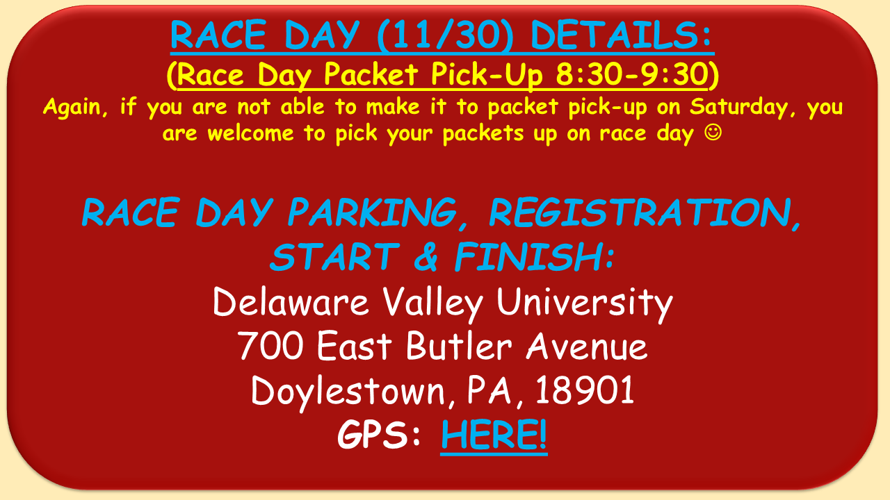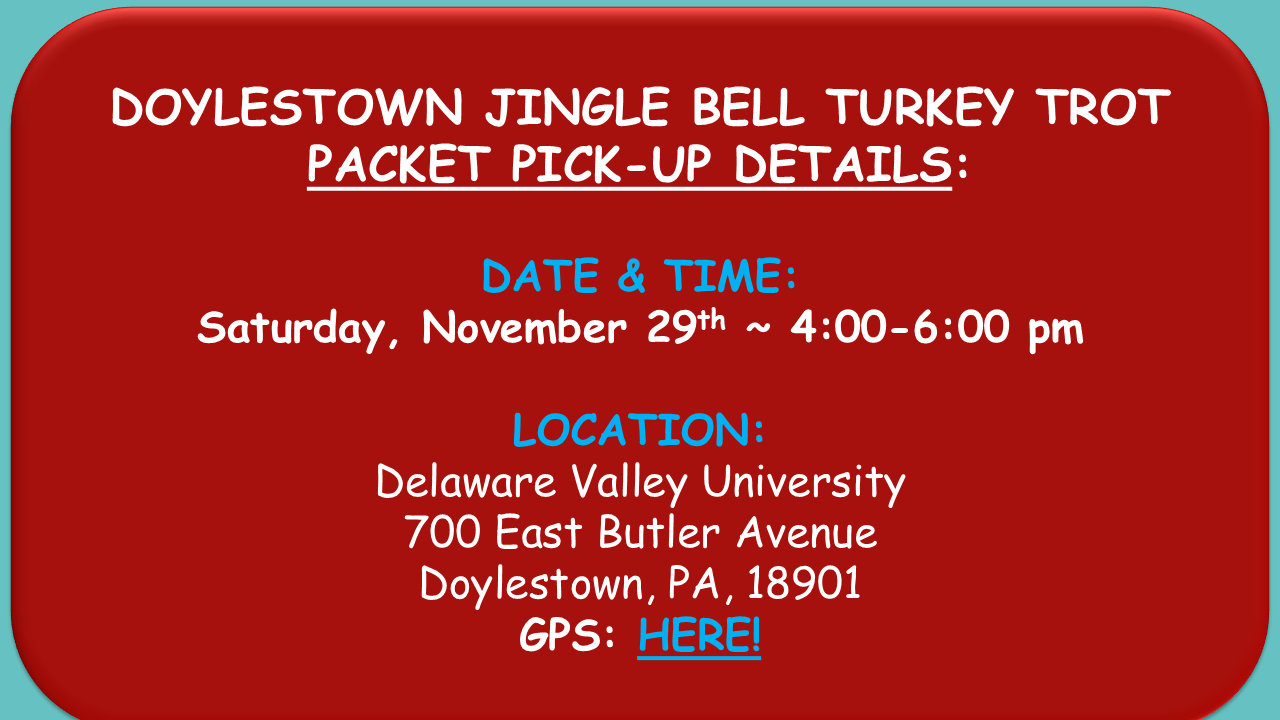 Dear AWESOME runners & walkers that have already registered for The 9th Annual Doylestown Jingle Bell Turkey Trot;